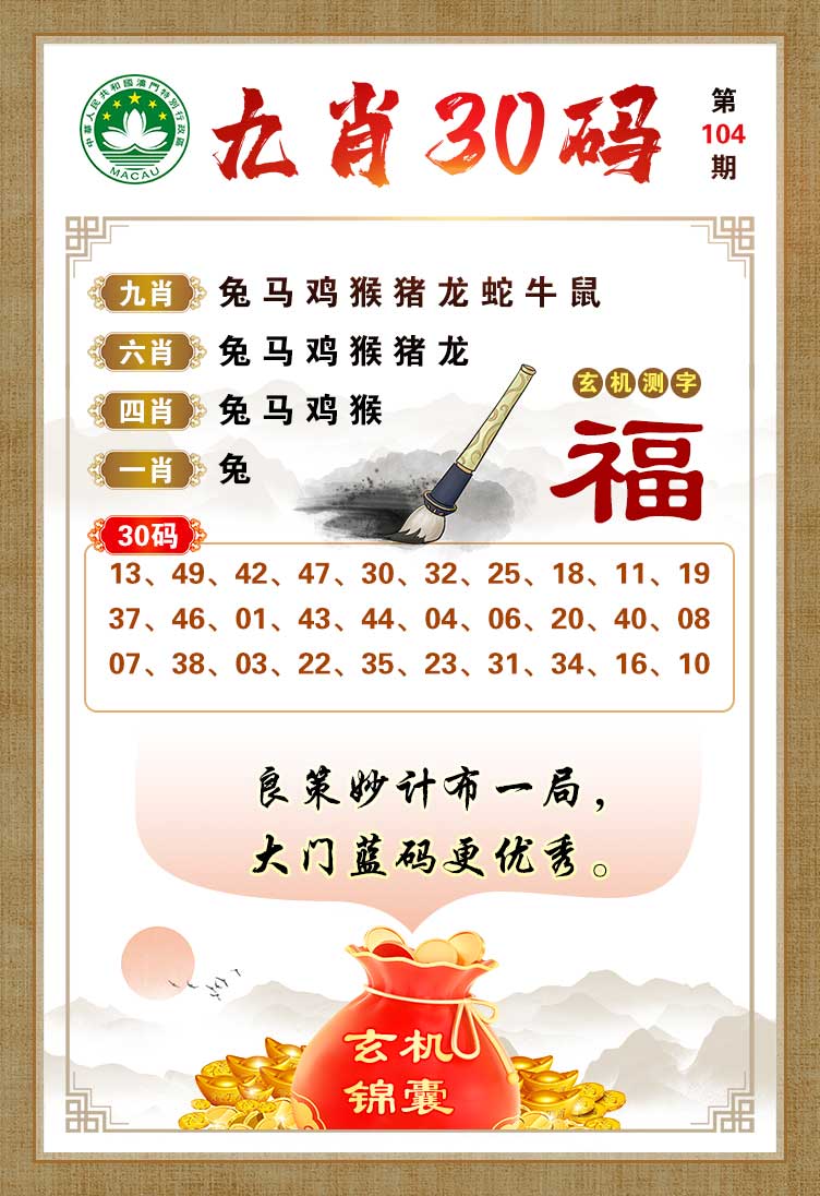 104期:好运来杀三肖【牛龙猪】开:马01准